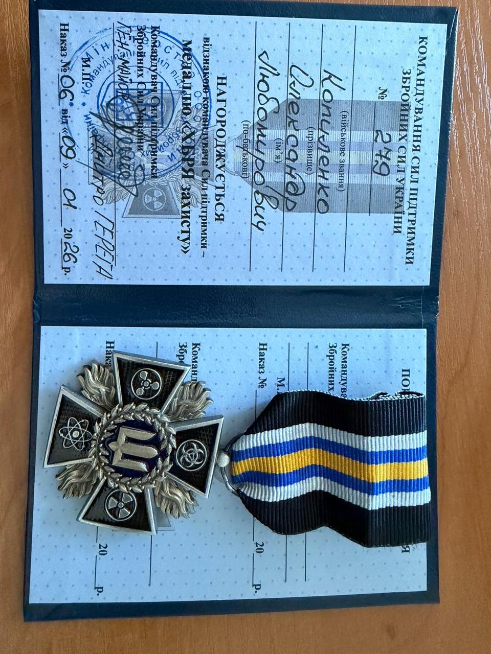Голова Національної комісії з радіаційного захисту населення України, народний депутат України, академік НАН України Олександр Любимович Копиленко удостоєний високої відзнаки командувача Сил підтримки Збройних Сил України — медалі «ХБРЯ захисту».